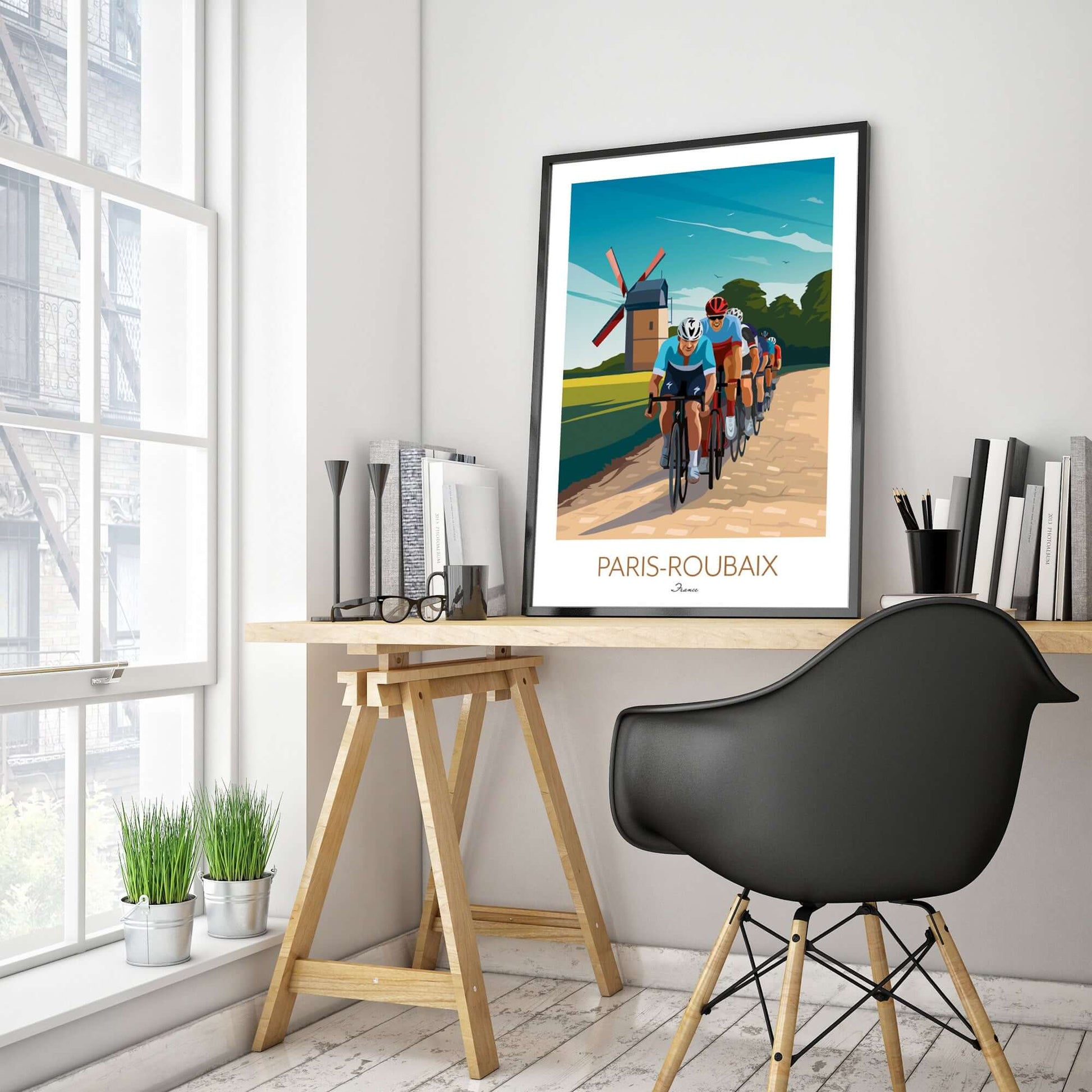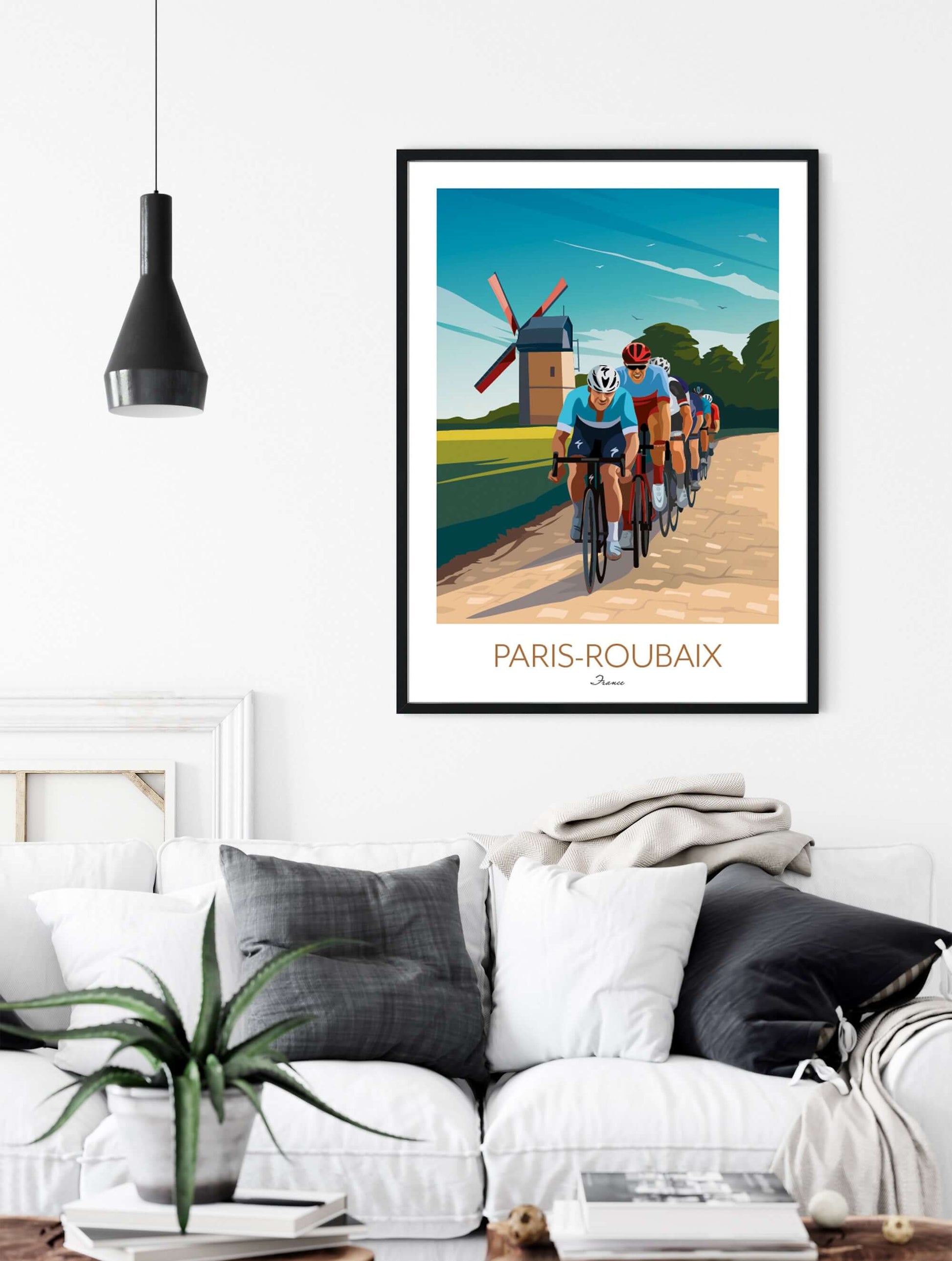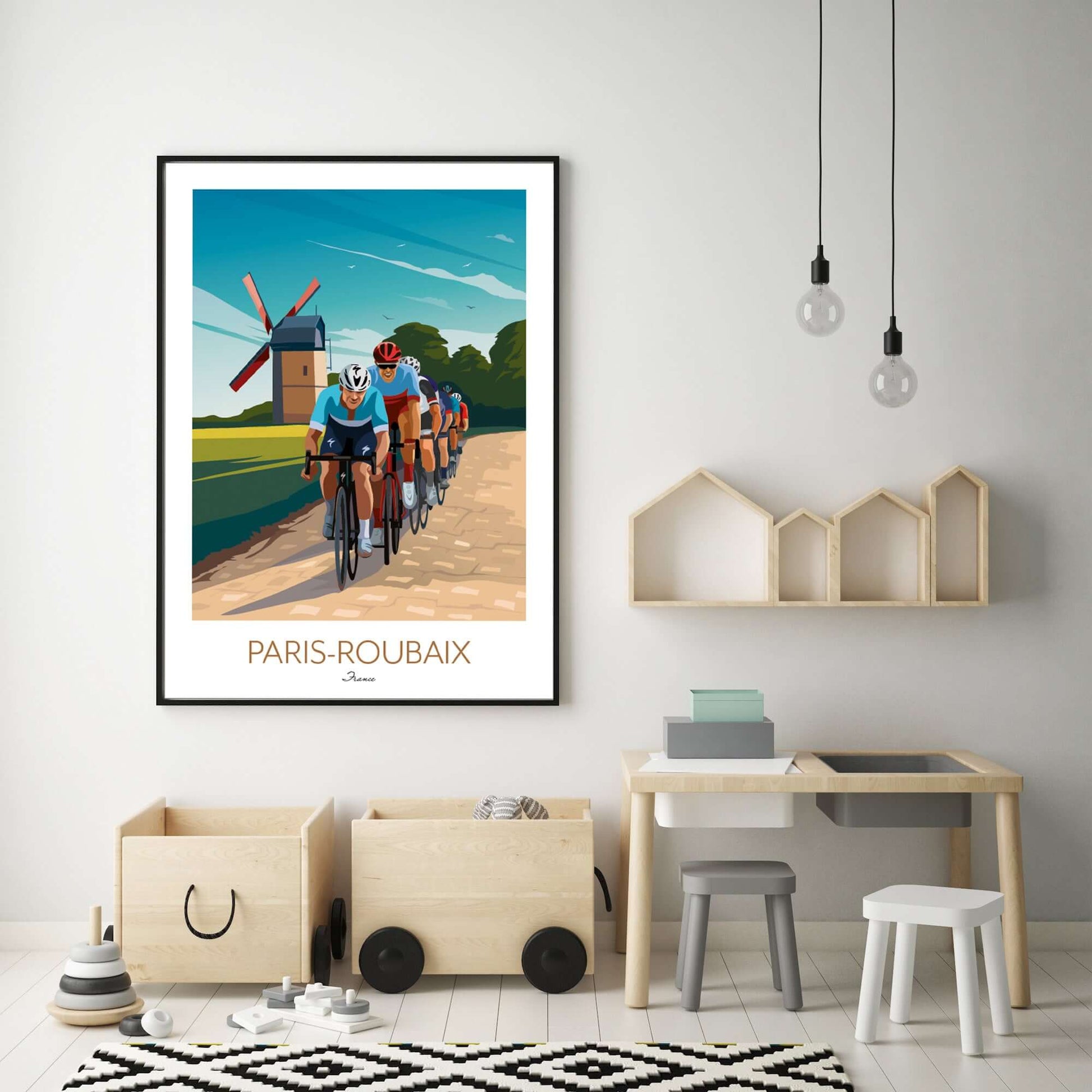 If you're searching for Paris Roubaix posters for sale or unique cycling wall art to buy, this Paris Roubaix print offers a striking depiction of the cobblestone battle and traditional French countryside. Perfect for anyone looking to enhance their space with premium cycling wall decor that celebrates the sport’s toughest race.